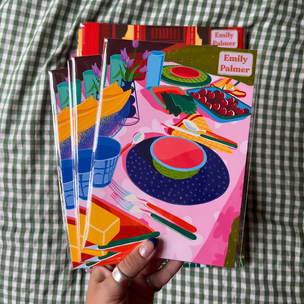 For example, my A6 greeting cards often lean into relatable moments or simple, striking visuals, while my larger prints (A3 especially) focus on pieces that can stand as statement artwork.